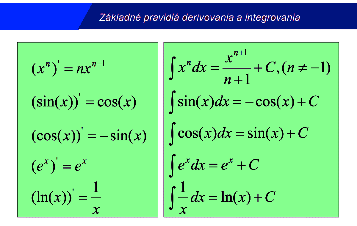 Prehľad pravidiel pre Derivácie a Integrály